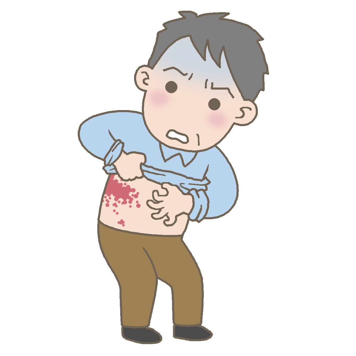 発症直後はあせもに似た発疹が見られますが、あせもと違い、かゆみだけでなく痛みをともなうケースが多くみられます。進行すると水膨れが発生するのが特徴です。日本人では5~6人に1人がかかるとされています。
