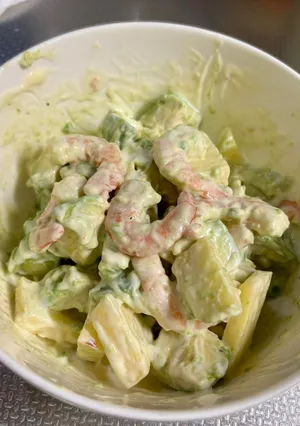 - 2茹でむき海老はキッチンペーパーで水気をしっかり拭き取る。