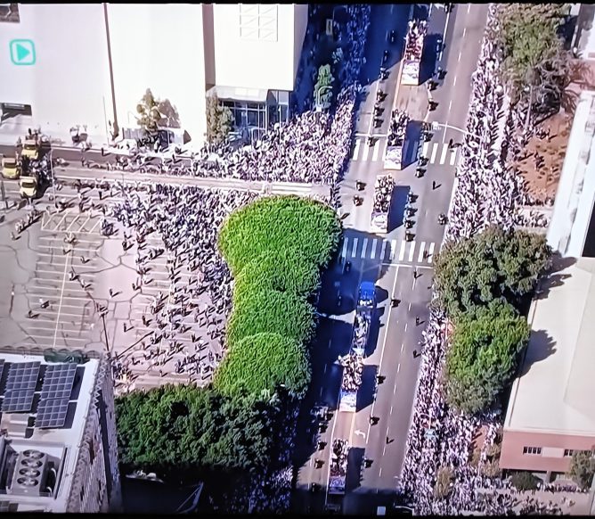 パレード中にはいくつか特別なイベントがありました。特に印象的だったのは、ドジャースの選手たちがファンと交流するために設けられた特別なステージです。ここでは、大谷翔平選手や他のスター選手たちがスピーチを行い、ファンに感謝の言葉を述べました。また、パレードの途中で花火が打ち上げられ、街全体が祝賀ムードに包まれました。