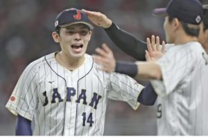 決勝戦では、今永昇太(DeNA)が1点を失ったものの、三回表から登板した2番手戸郷翔征(巨人)がトラウト(エンゼルス)を外角のフォークボールで空振り三振に取り、ガッツポーズを見せた。3番バッターのゴールドシュミット(カージナルス)も左飛で抑え込んだ。しかし、その後連続四球を許し、絶好調のターナー(フィリーズ)に対峙。148キロの直球で空振りを奪い、最後は内角のフォークボールで三振を取った。