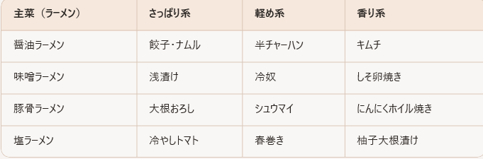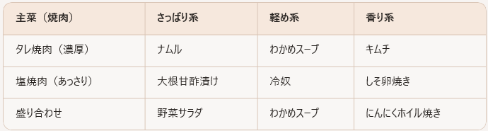 → 香ばしい餃子に、さっぱりした野菜の副菜で油っぽさを中和。