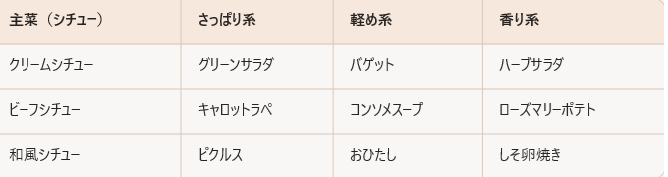 - ビーフシチュー+キャロットラペ+コンソメスープ+ローズマリーポテト