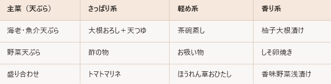 → 香りと彩りを添えて、天ぷらに華やかさをプラス。 - 🍴献立イメージ