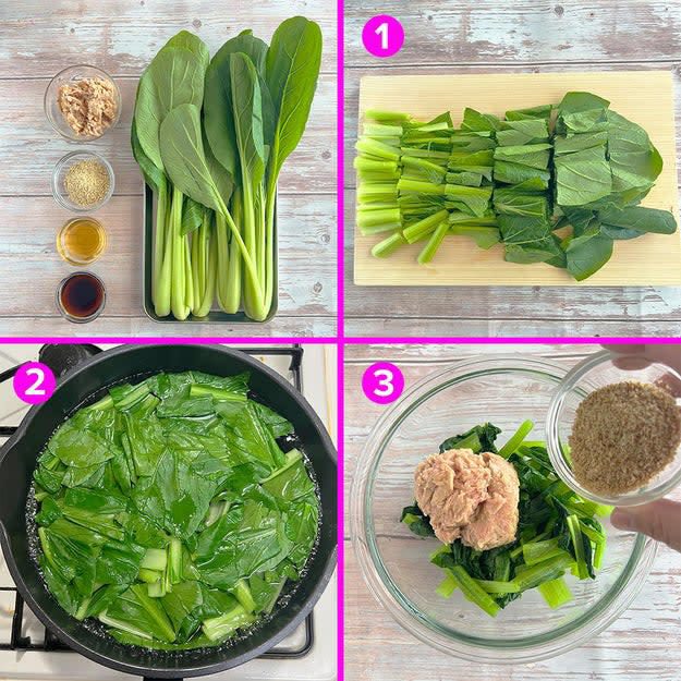- ナス・チキンカツと小松菜梅肉あえ