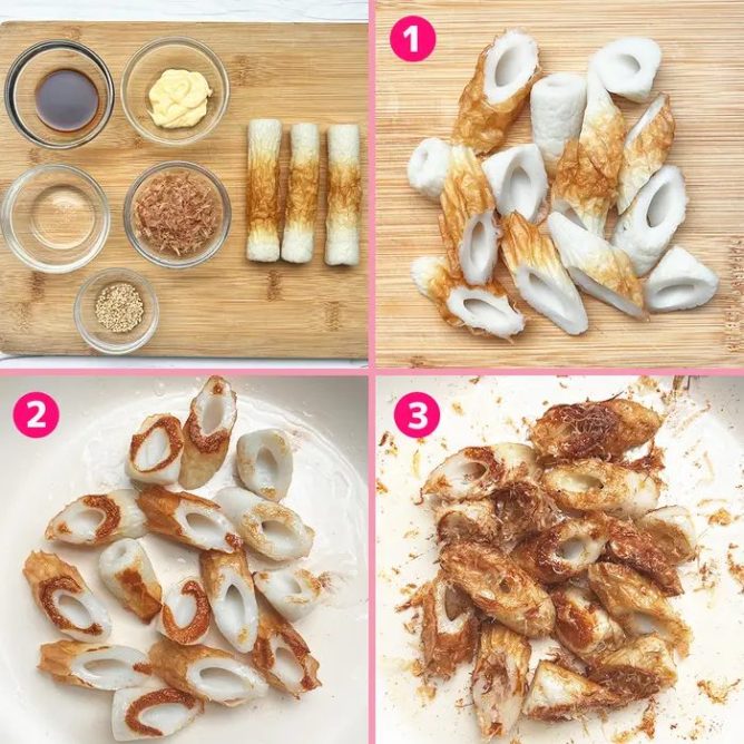 ① ちくわを1センチ幅に切る。