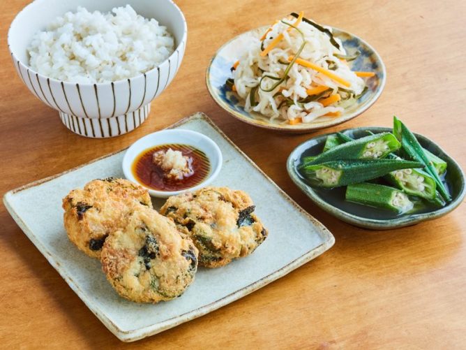 豆腐とツナの手作りがんも・オクラのゆずこしょう煮浸し・切り干し大根のハリハリあえ