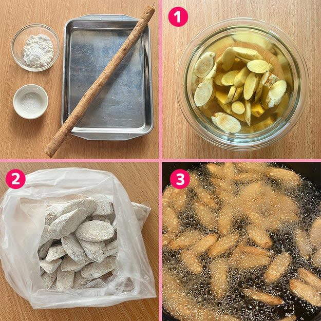 ③ フライパンにサラダ油を引いて中火で熱し、片栗粉をまぶした②を並べて揚げ焼きにしたら、完成!