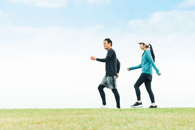 筋トレ(力を入れるときフーと息をはいて)スクワットなどと ウォーキング